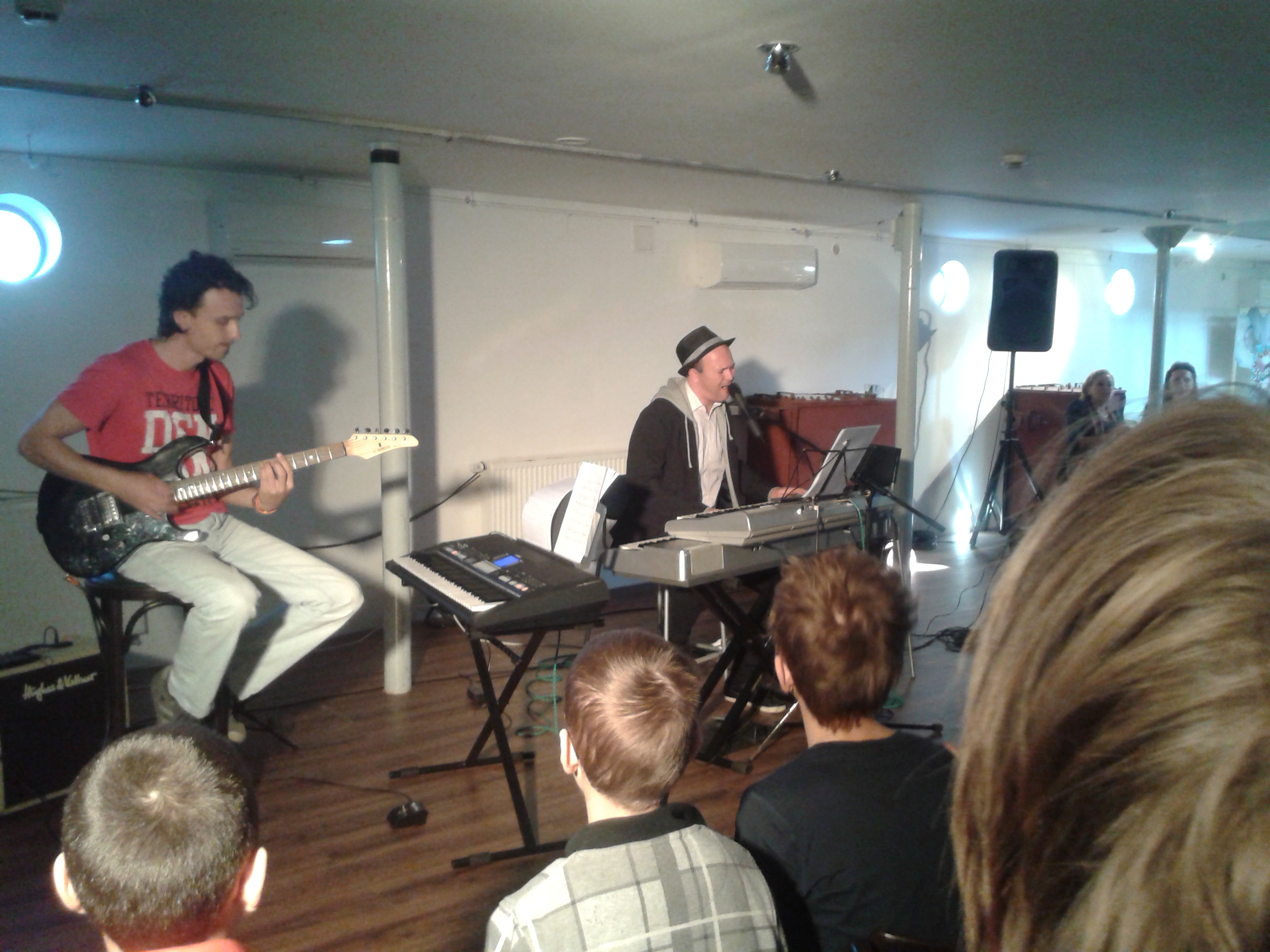 Zoskupenie Duo concertante zoznámilo žiakov prostredníctvom živého koncertného vystúpenia s históriou vzniku džezu, rokenrolu,country, reggae, latino, rocku a popu.Mnohé z piesní žiaci poznali a spievali s hudobníkmi. Atmosféru koncertu dotvárali aj temperamentné tanečné vystúpenia niektorých žiakov, za ktoré si vyslúžili od publika potlesk.Na záver hudobníci naučili spievať žiakov pieseň Královna bielych tenisiek.