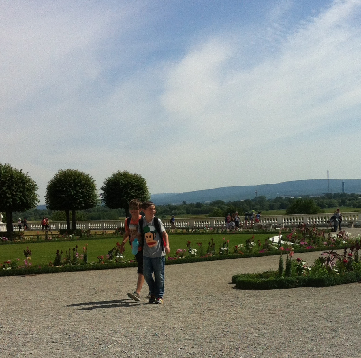 Po prehliadke sme trávili čas v zámockých záhradách, ktoré ponúkajú okrem úžasného pohľadu na nádherne upravené plochy aj možnosti na hry.