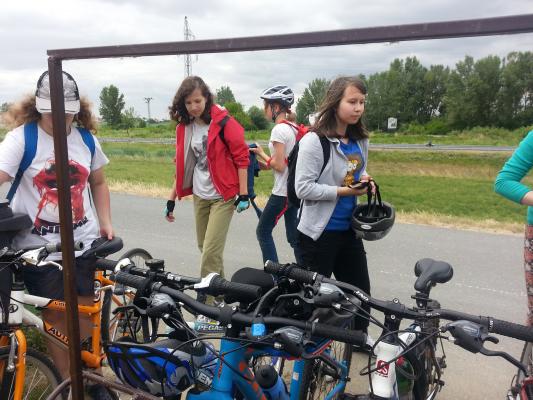 Žiaci 7.A a 8.B spolu s triednymi učiteľmi podnikli výlet do Rusoviec. Zastavili sa v areáli Rusovského kaštieľa, dali si zmrzlinu, navštívili Čunovské jazerá a naobedovali sa na hrádzi. Všetci to zvládli. Celkovo prešli asi 33 km.