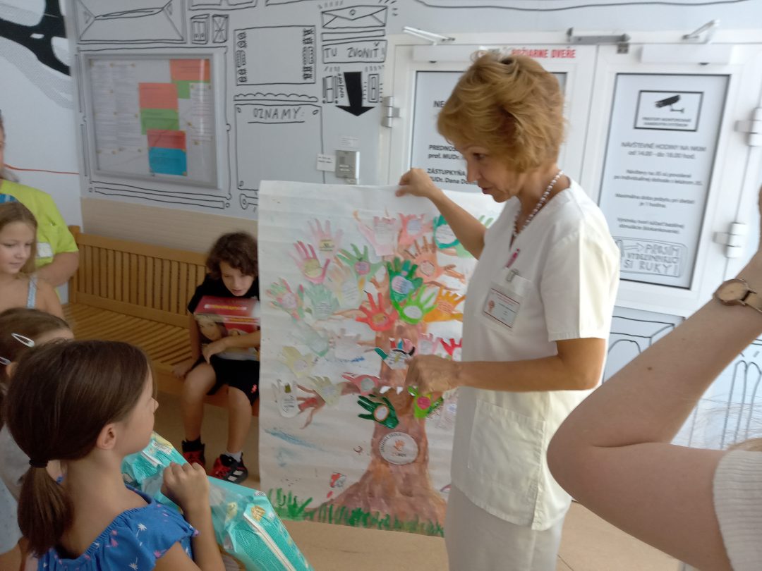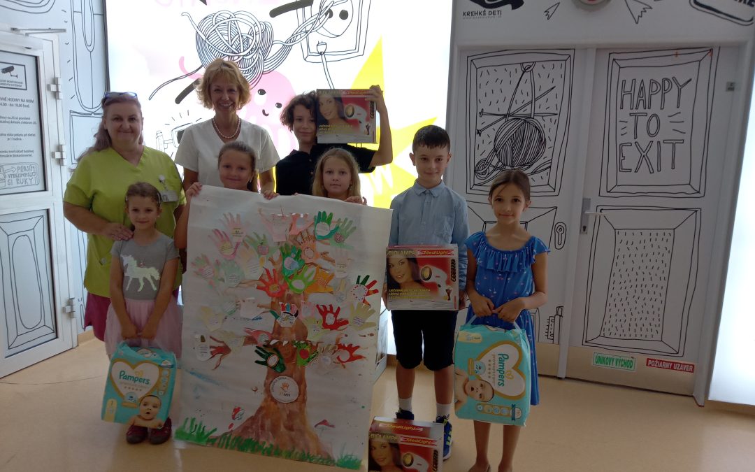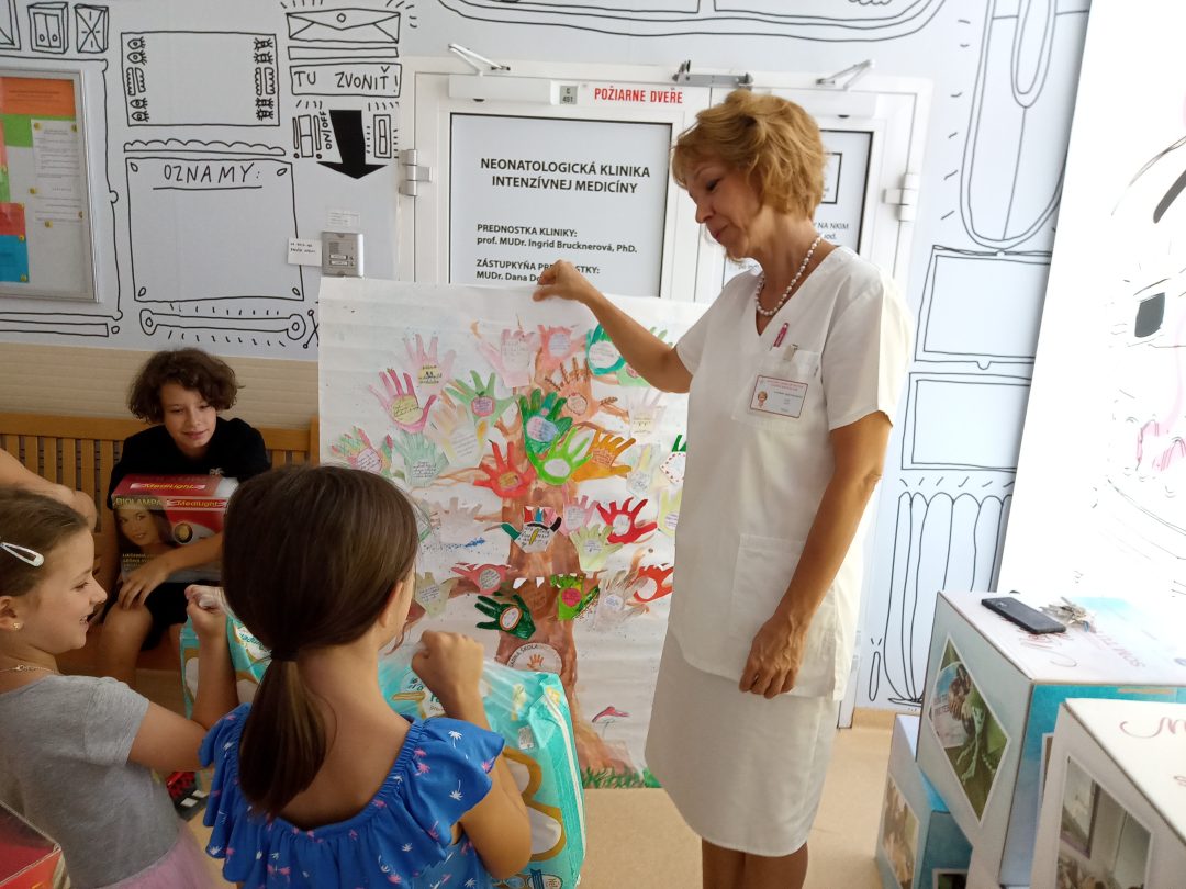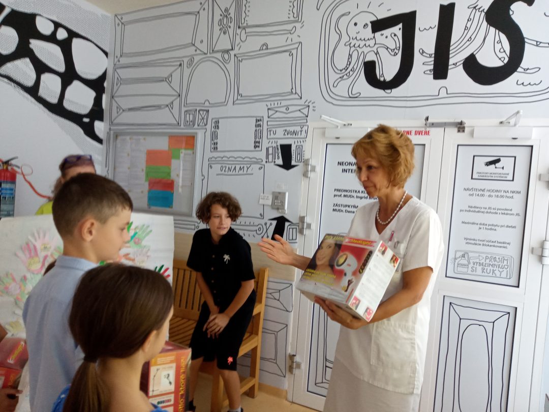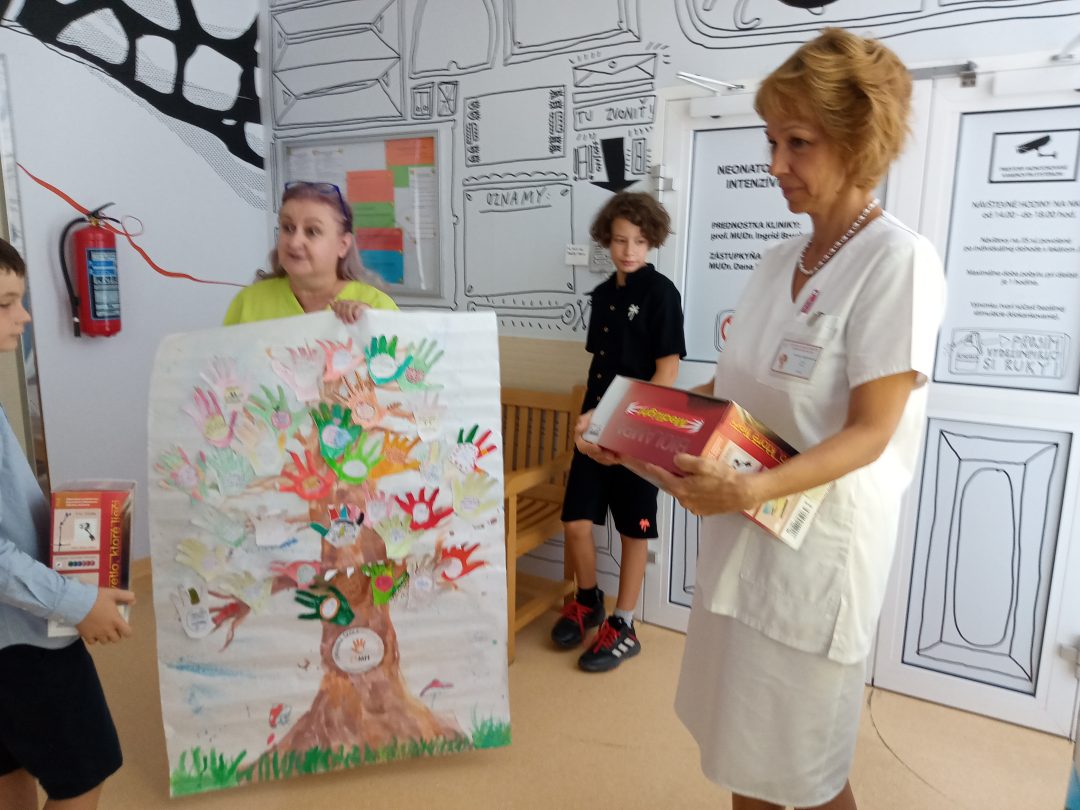 1.6.2023 ZŠ s MŠ Milana Hodžu organizovala detskú burzu, ktorej finančný výťažok bol venovaný Neonatologickej klinike intenzívnej medicíny LK UK a NÚDCH. Z vyzbieraných peňazí sa zakúpili biolampy na podporu liečby terapie svetlom predčasne narodených detí spolu s plienkami. Neodmysliteľnou súčasťou bol aj plagát vyrobený žiakmi, plný odkazov pre novonarodené deti. Zakúpené dary odovzdali žiaci školy 13.9.2023 pani prednostke prof. MUDr. Ingrid Brucknerovej, PhD. a vedúcej sestre pani Mgr. Renáte Jančovičovej priamo na klinike. Pri príležitosti odovzdania darov mali žiaci možnosť vidieť simulátory bábätiek, ktoré slúžia k výučbe a k starostlivosti o predčasne narodené dieťatko pre budúcich lekárov, ale aj rodičov. Sme veľmi radi, že sme mohli aj takto pomôcť novým človiečikom, ktorí prišli medzi nás.