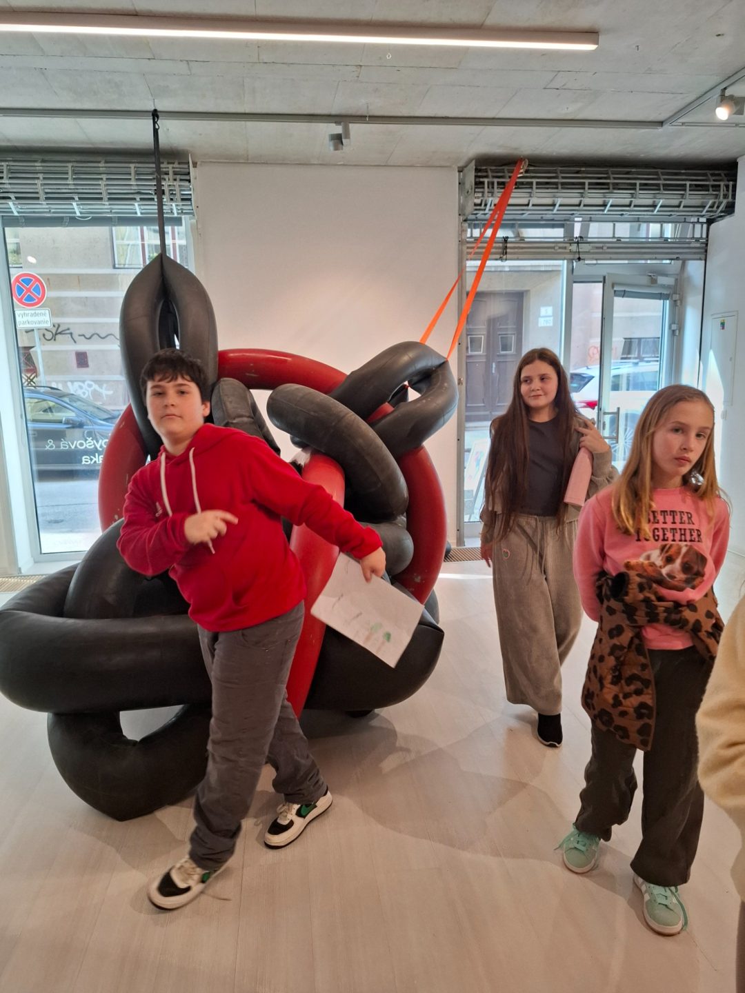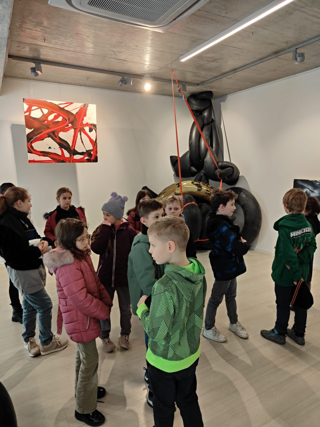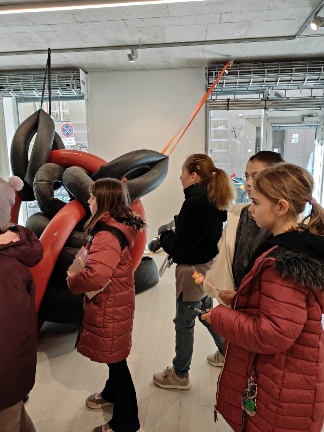 Žiaci z 3.A a 4.B sa opäť vrátili do obľúbenej galérie Čin Čin a tentoraz navštívili zaujímavú výstavu VZduchom slovenských umelcov – maliarky Patrície Koyšovej a sochára Mariána Straku. Abstraktné diela, ktoré si mohli prezrieť, doplnila svojim zanieteným komentárom majiteľka galérie a porozprávala žiakom zaujímavosti z tvorby diel pomocou vzduchového kompresora. Obrovský úspech mala u žiakov vôňa pneumatík a možnosť dotknúť sa vystavených sôch.