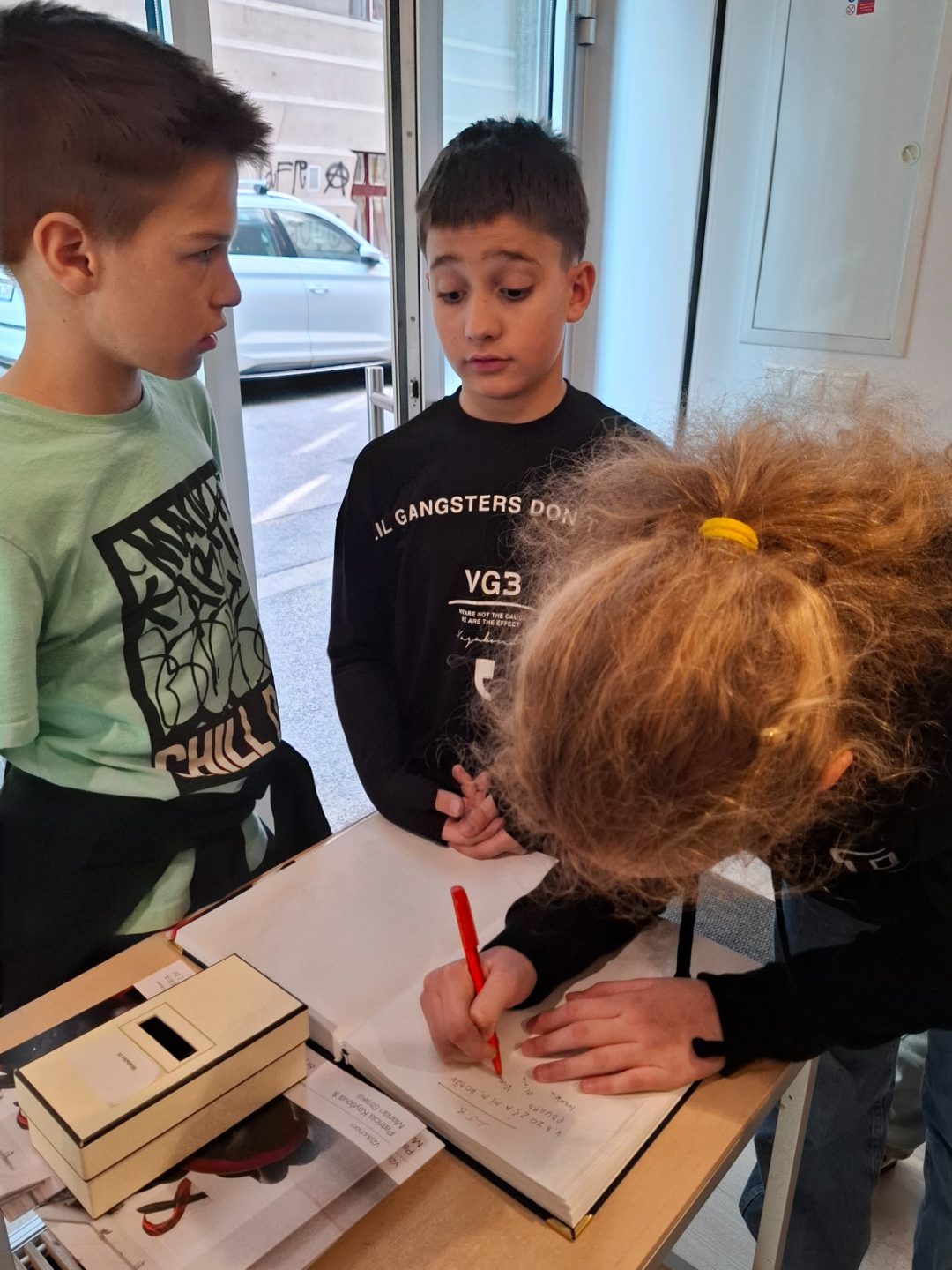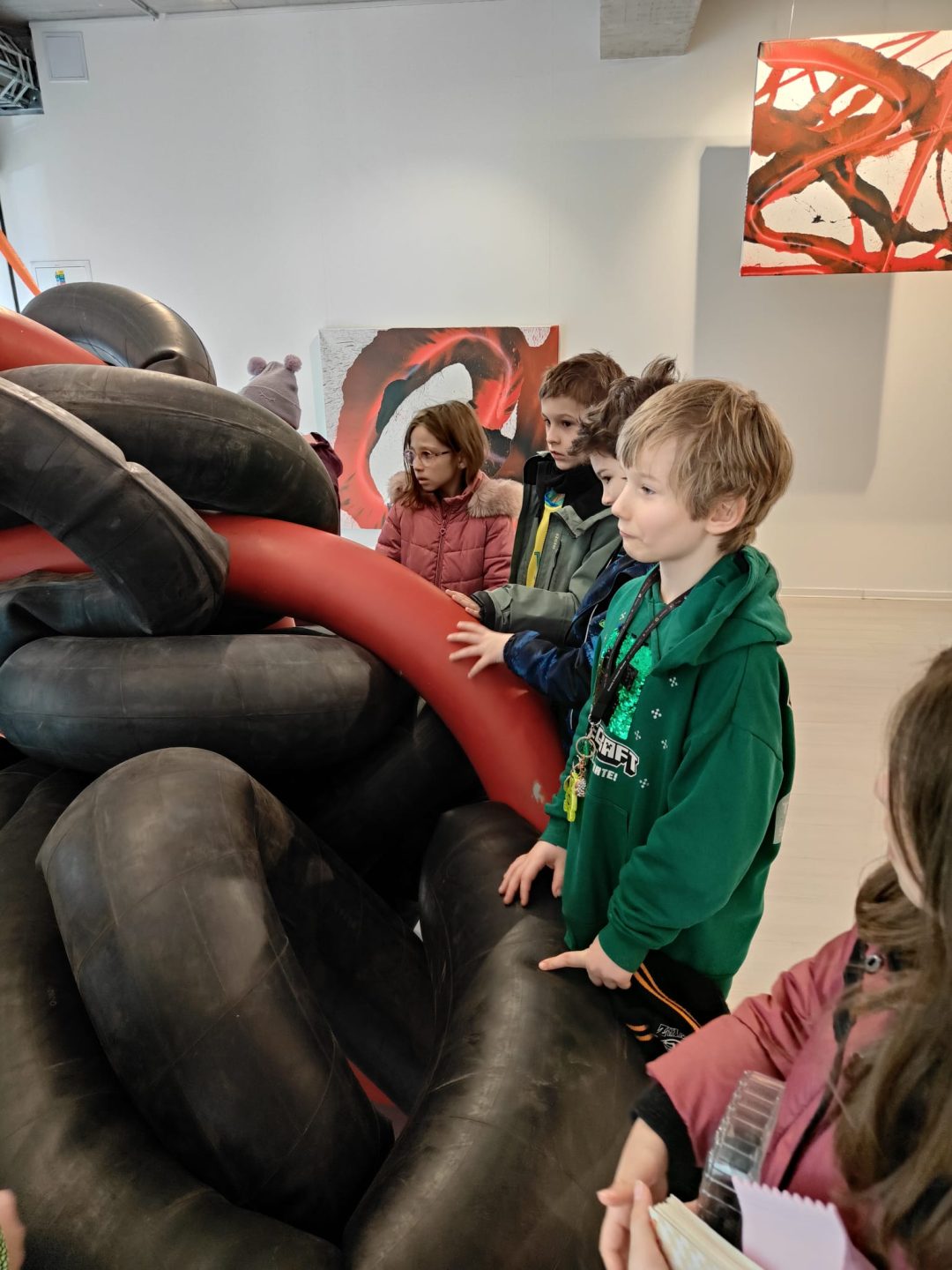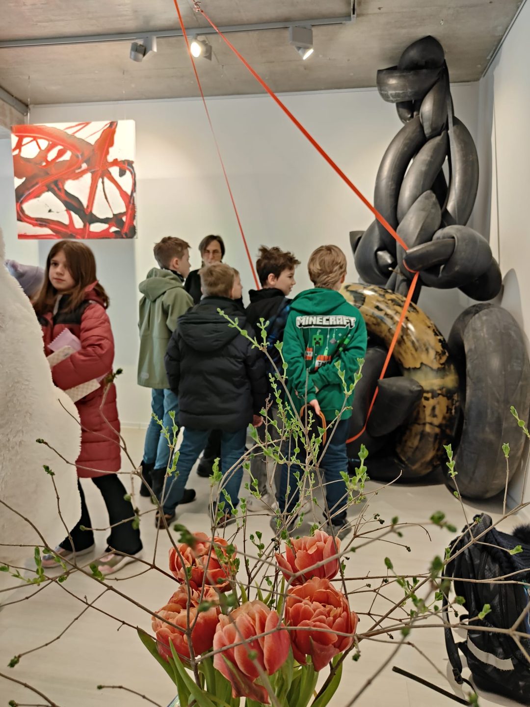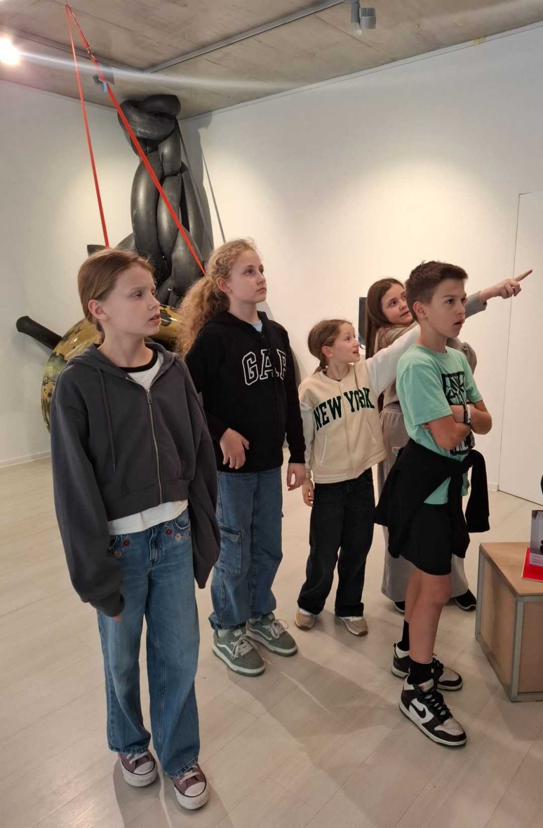 Žiaci z 3.A a 4.B sa opäť vrátili do obľúbenej galérie Čin Čin a tentoraz navštívili zaujímavú výstavu VZduchom slovenských umelcov – maliarky Patrície Koyšovej a sochára Mariána Straku. Abstraktné diela, ktoré si mohli prezrieť, doplnila svojim zanieteným komentárom majiteľka galérie a porozprávala žiakom zaujímavosti z tvorby diel pomocou vzduchového kompresora. Obrovský úspech mala u žiakov vôňa pneumatík a možnosť dotknúť sa vystavených sôch.