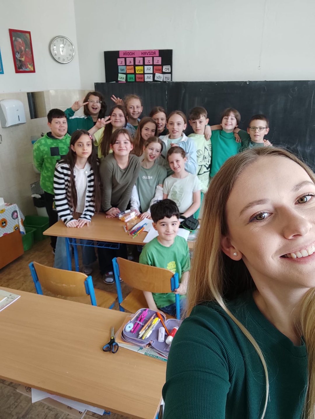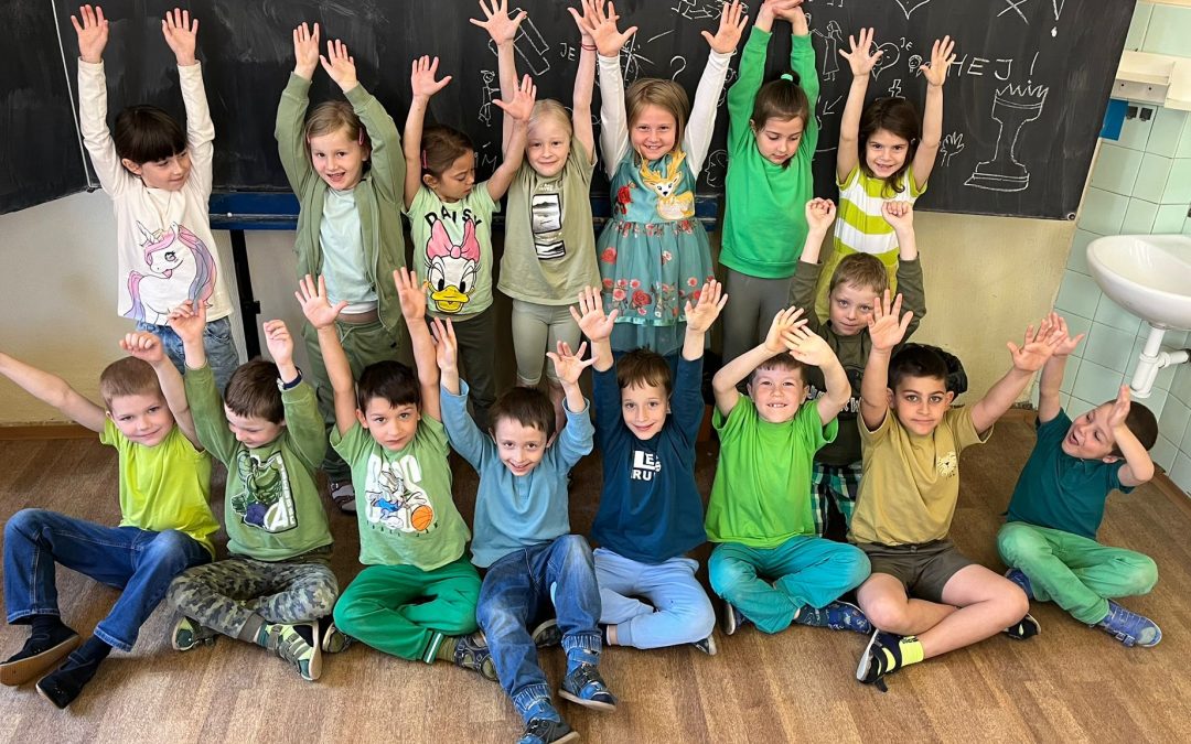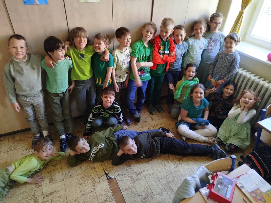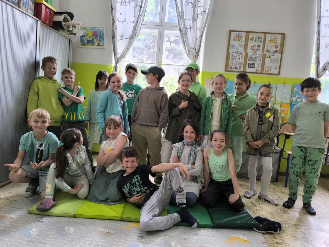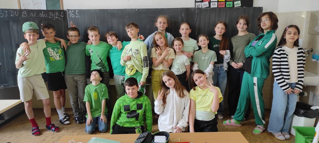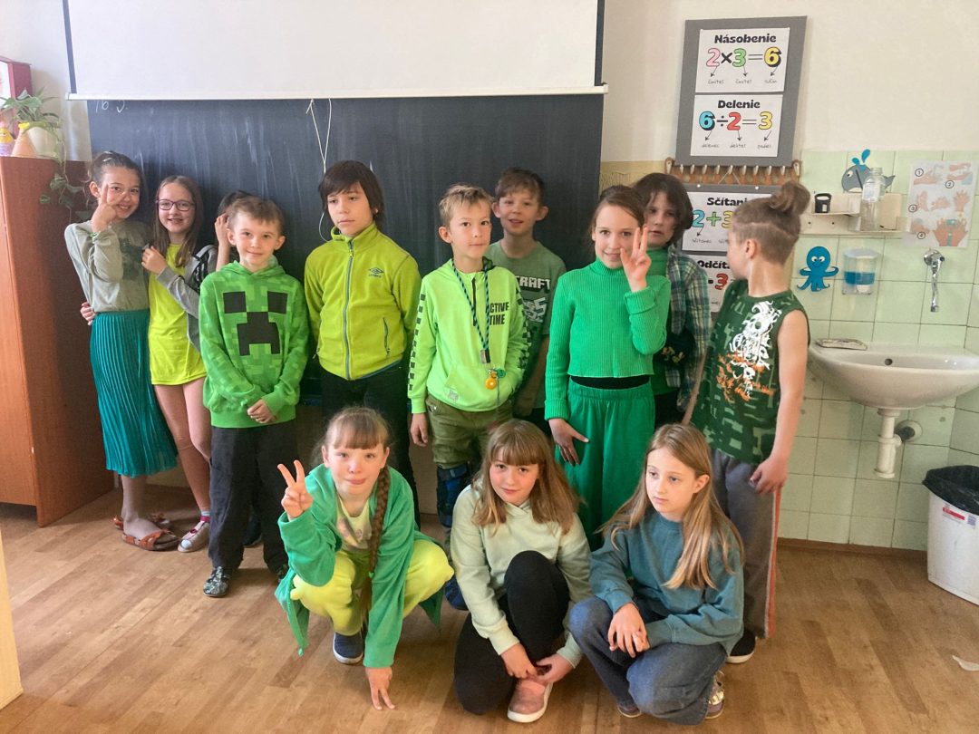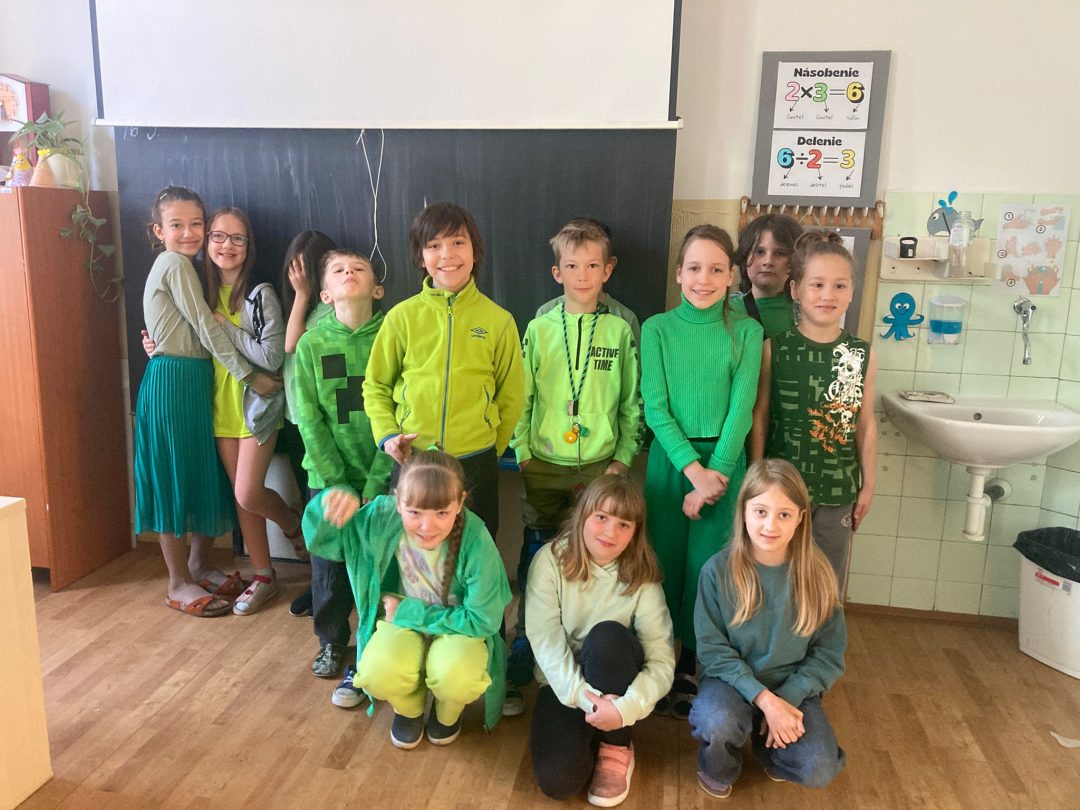 Jar je už v plnom prúde, všetko sa zelená, záhrady a stromy hýria všakovakými farbami, tešíme sa zo slniečka. Preto sme sa rozhodli, že sa oblečieme do zelenej farby, aby sme ešte viac podporili v nás veselú, jarnú náladu a možno prilákali teplejšie jarné počasie. Každý, kto prišiel v zelenom, dostal malý darček.
